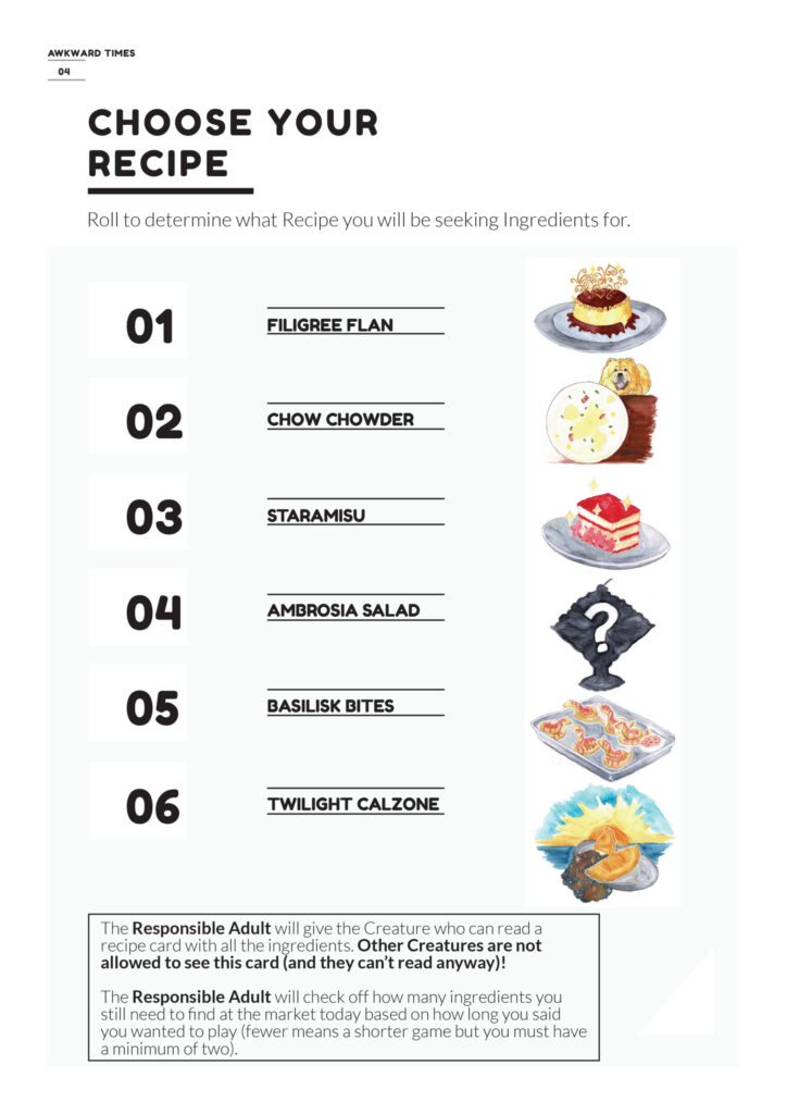 a tabletop RPG for 2-5 magical creatures and 1 responsible adult